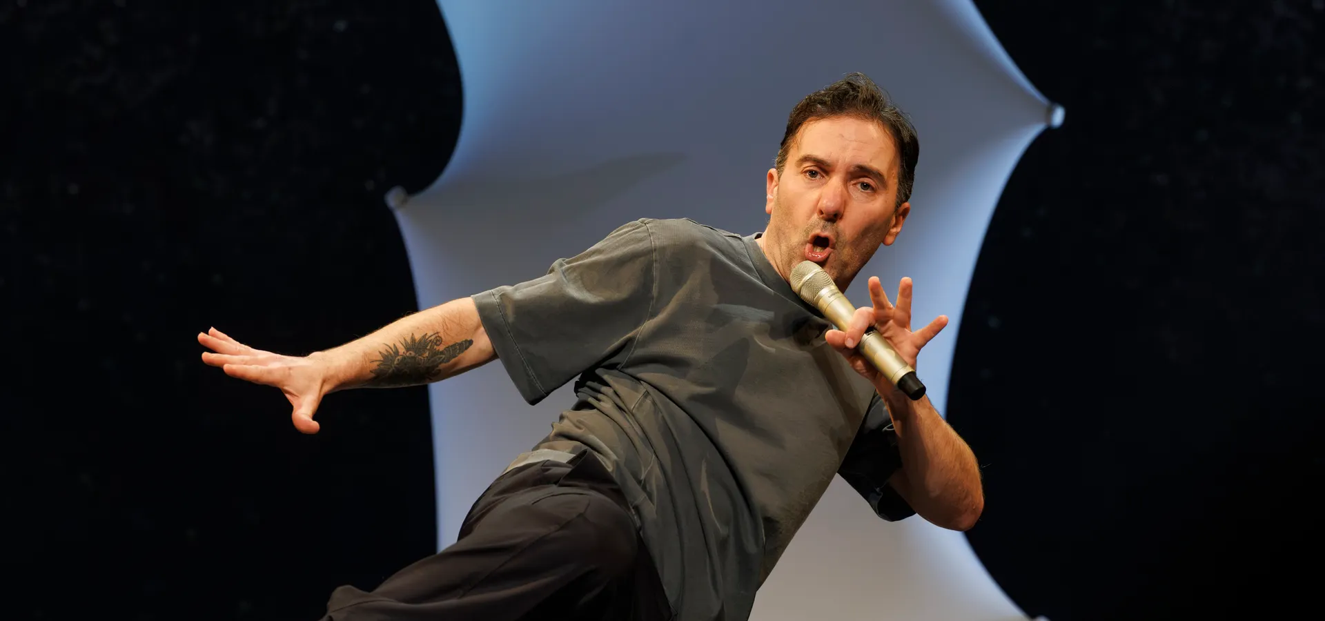 - Hoog tempo vol fysiek spel en absurdistische observaties.
